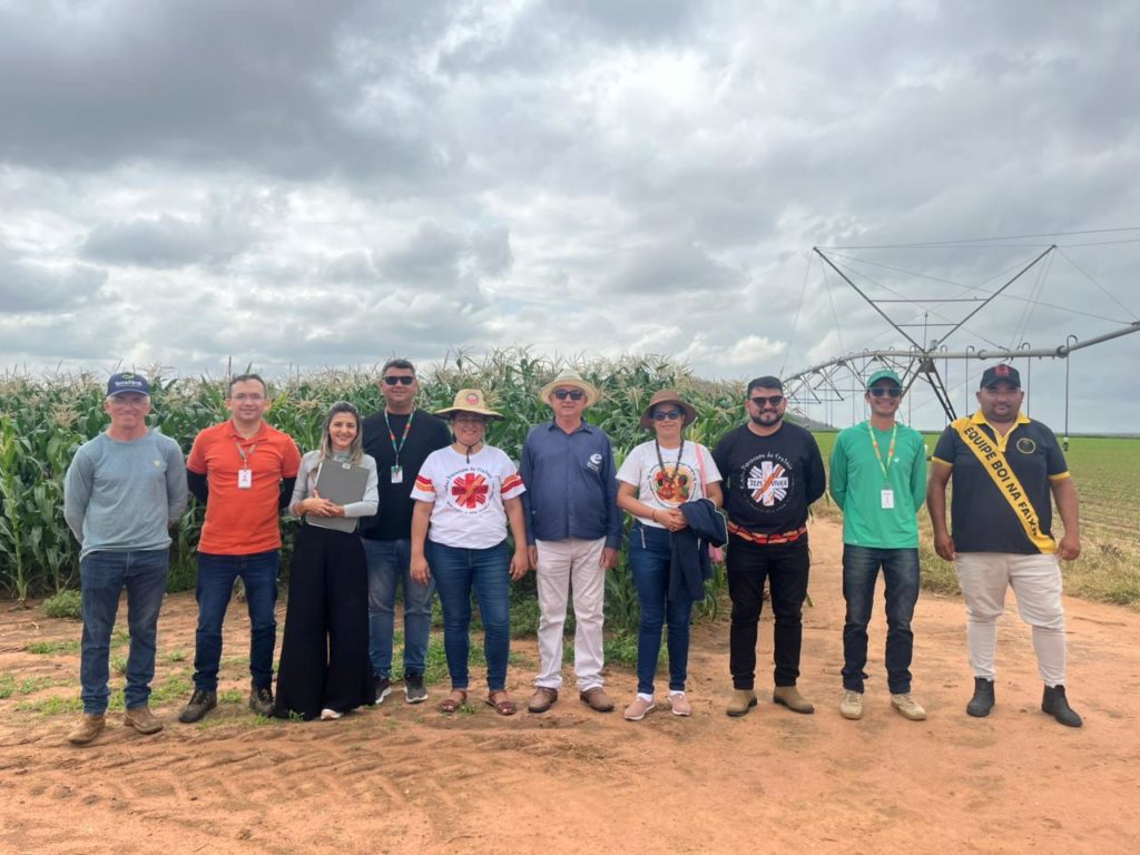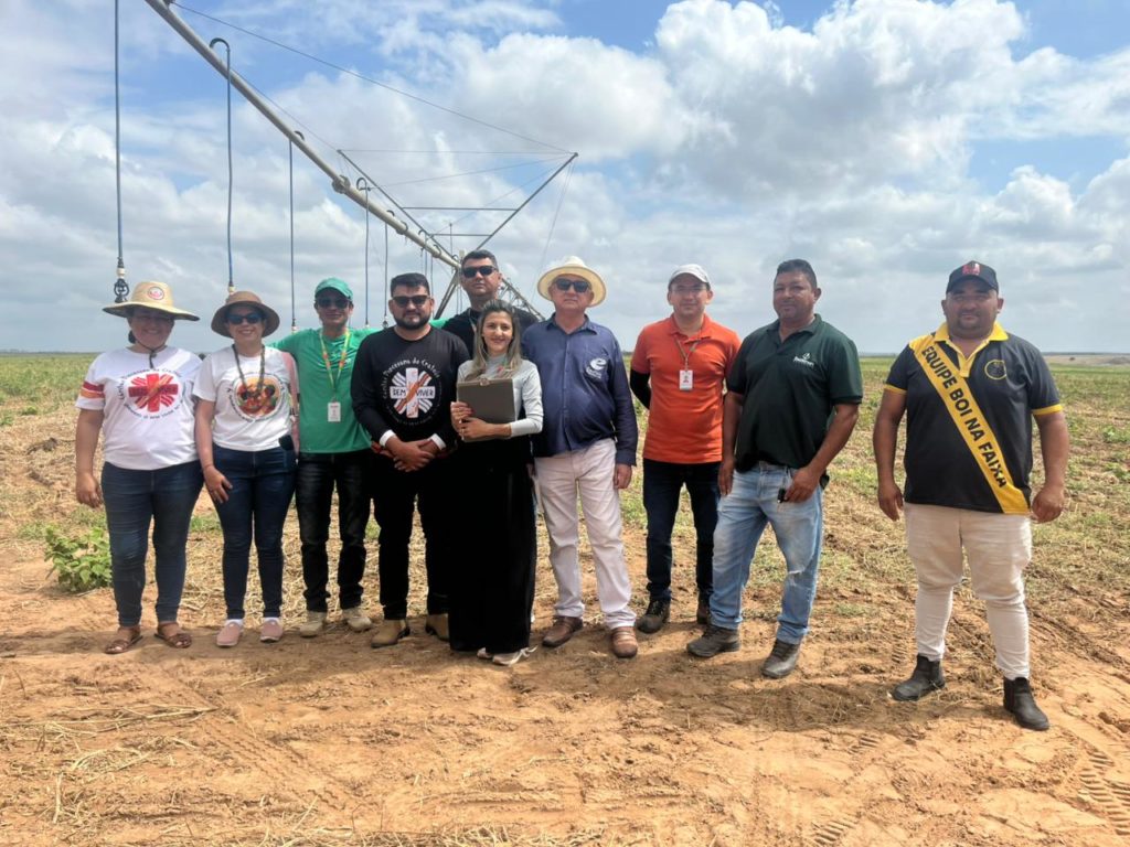 A primeira área visitada foi o pivô central do Condomínio de Irrigação Mucambo, de responsabilidade do irrigante Manoel Parente. Na ocasião, os membros da Comissão dialogaram com o irrigante sobre o uso da água aprovado pelo colegiado, em que confirmaram quais culturas implantadas estavam em conformidade com o deliberado em junho de 2025 durante a Alocação Negociada de Água do açude Realejo.