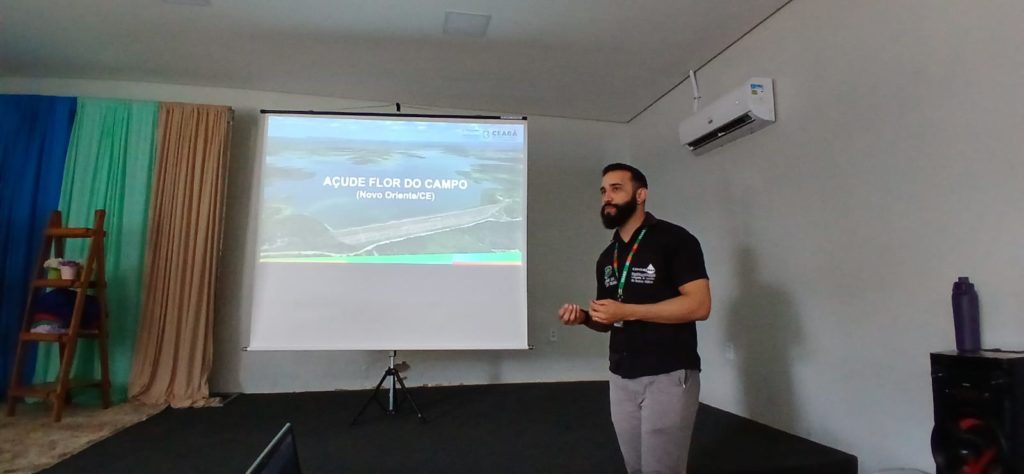 O técnico do Núcleo de Operação da COGERH/Crateús, Danilo Florindo, apresentou dados atualizados da operação do açude, destacando as vazões e usos aprovados pelo Comitê da Bacia Hidrográfica dos Sertões de Crateús: 45 L/s destinados ao abastecimento da sede municipal de Novo Oriente (CAGECE), 6 L/s para comunidades no entorno (SISAR) e 4 L/s para usos difusos, totalizando 55 L/s.