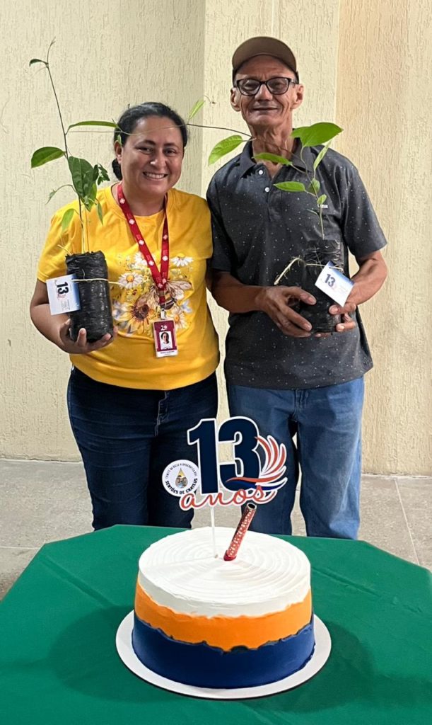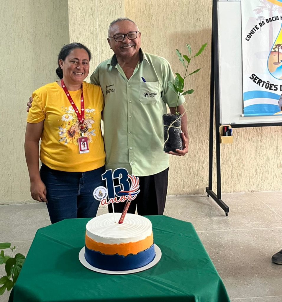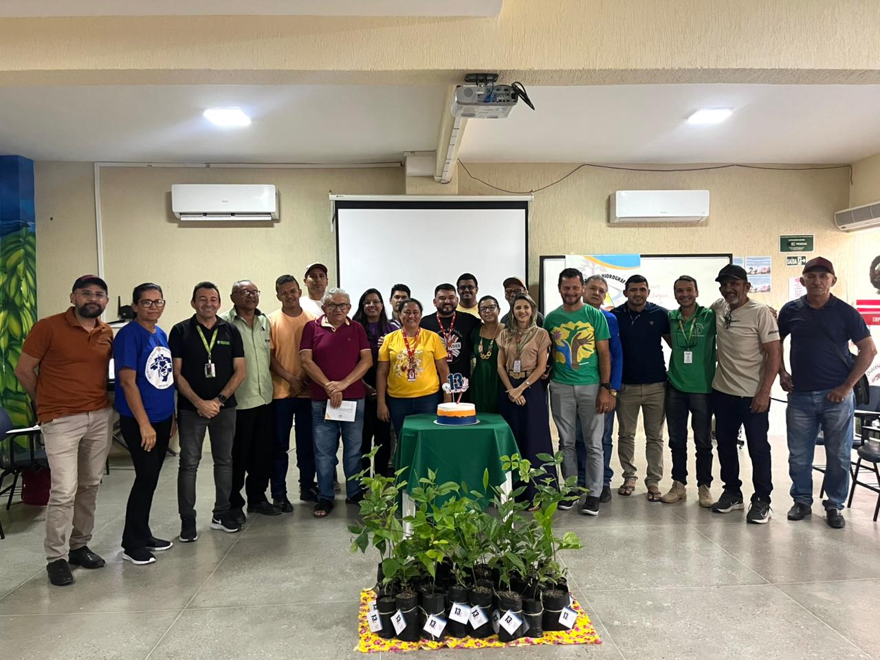Para finalizar, houve uma comemoração do aniversário de 13 anos do Comitê dos Sertões de Crateús. A ocasião foi marcada por um gesto simbólico que reforça o compromisso ambiental do colegiado. Durante o evento, foram entregues mudas de espécies nativas e frutíferas aos membros, em uma ação apoiada pela Secretaria de Meio Ambiente, Urbanismo e Proteção Animal de Crateús, responsável pela doação das plantas.